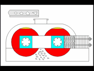 7. 對輥破碎機(jī)裝有安全防護(hù)裝置,當(dāng)有意外金屬鐵件進(jìn)入破碎腔后,防護(hù)裝置動(dòng)作,鐵件漏出設(shè)備正常運(yùn)轉(zhuǎn)。