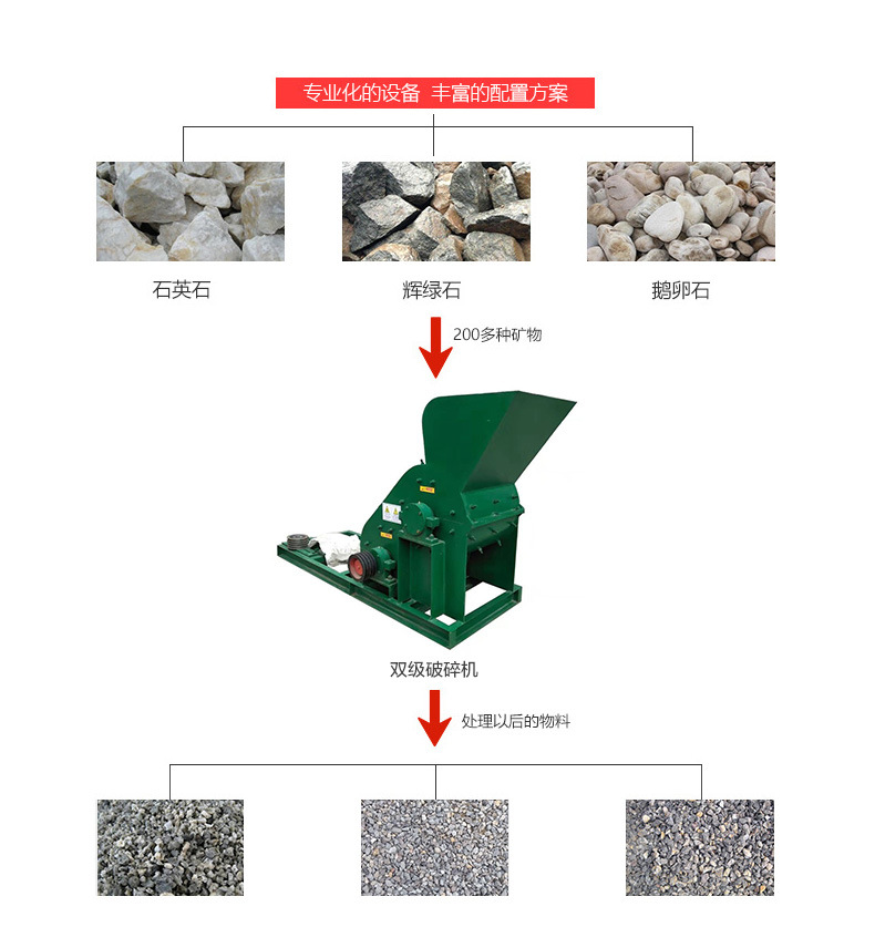 2.對于與煤矸石同等硬度的物料,比如:煤炭、原煤、爐渣、煤渣、頁巖、建筑垃圾、各類礦石、化工原料等,均可粉碎。